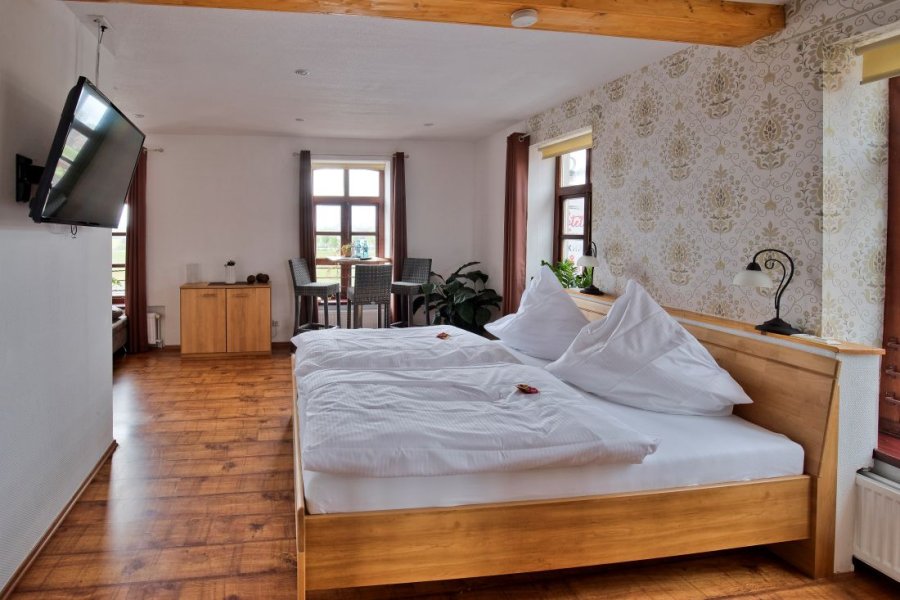 Einzelzimmer befinden sich in einem Fachwerkgebäude, nur wenige Schritte